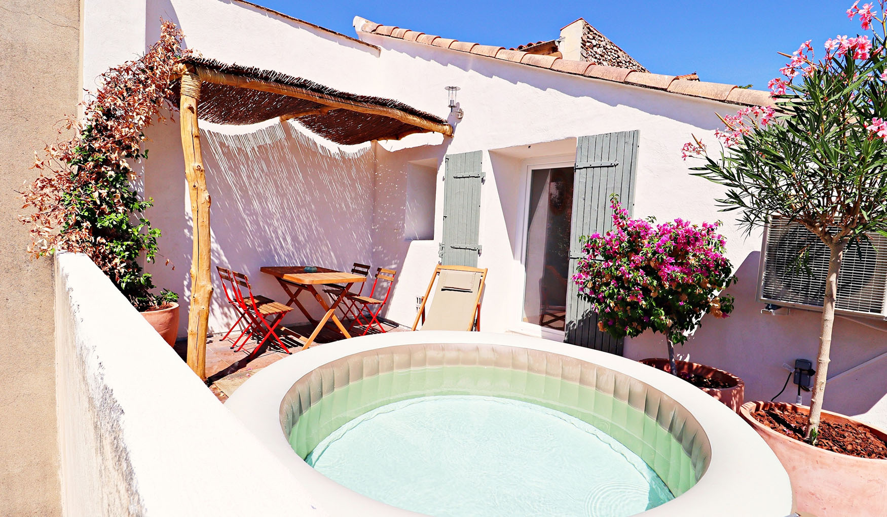 Superbe appartement T2 et son jacuzzi / 57 m² pour 4 personnes, plein centre dans l’un des coins privilégié de Nîmes à quelques mètres des Jardins Romains de la Fontaine.
